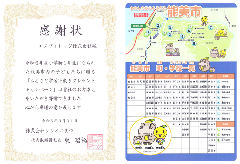能美市校下の新入学生向けの下敷きに協賛させて頂きました。